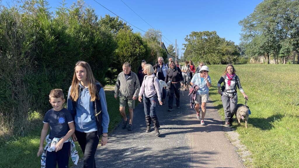 | Des participants à la marche pour les enfants vietnamiens dans la commune française de Domats. |
