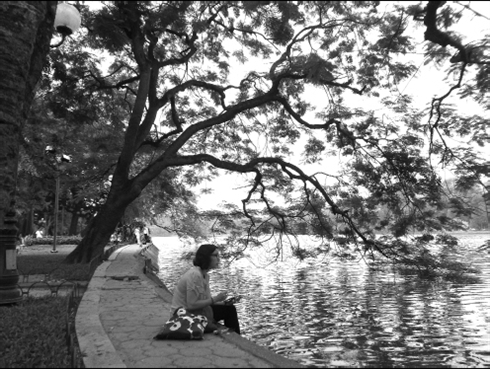 De même pour Hanoi, la capitale du Vietnam, pour laquelle elle éprouve un sentiment parti-culier : «La ville de Hanoi est très belle, très agréable. Il y a beaucoup de choses à voir, j’aime l’atmosphère de la capitale, la vie foisonnante tout comme le calme de ses lacs, la couleur des monuments anciens ici». C’est encore dans cette ville que la jeune peintre française multiplie ses dessins et croquis d’habitants et scènes de rue. Tous ces moments simples mais inoubliables de la vie quotidienne vietnamienne sont sauvegardés en noir et blanc et en couleur à travers ses œuvres.