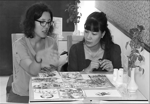 | La peintre Marielle (gauche) lors de notre entretien. Photo : Tùng Chi/CVN |