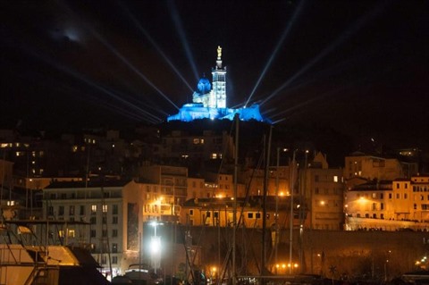 | Notre-Dame de la Garde illuminée pour le lancement de Marseille-Provence 2013 capitale européenne de la culture. |