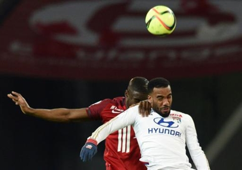 | Duel aérien entre le Lilloi, Adama Soumaoro (gauche), et le Lyonnais, Alexandre Lacazette, le 21 février au stade Pierre Mauroy |