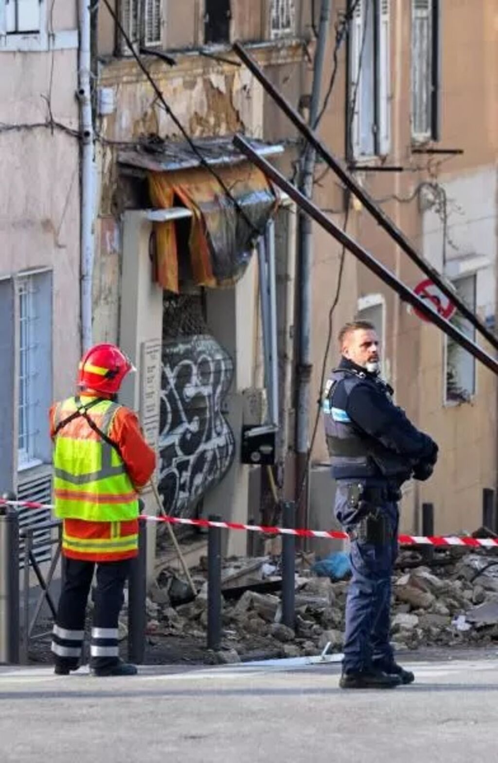 | Un pompier et un policier près d'un bâtiment partiellement détruit par un incendie qui s'est déclaré dans la nuit, le 3 décembre à Marseille. Photo : AFP/VNA/CVN |