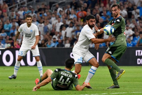 | Le joueur de Marseille, Morgan Sanson (centre), lors de la défaite face à Naples 1-0 en match amical, le 4 août. |