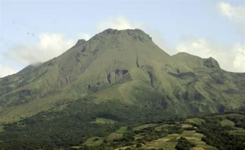 | Le volcan de la Montagne Pelée vu depuis la commune du Carbet, en Martinique, le 2 novembre 2005. |