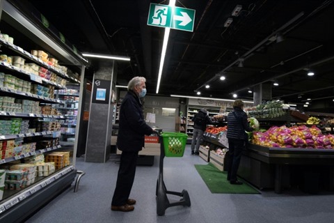 | Un homme fait ses courses dans un supermarché à Nantes en mai. |