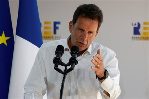 | Le président du Medef, Geoffroy Roux de Bézieux, lors de l'Université d'été du Medef, le 26 août à l'hippodrome de Longchamp à Paris. |