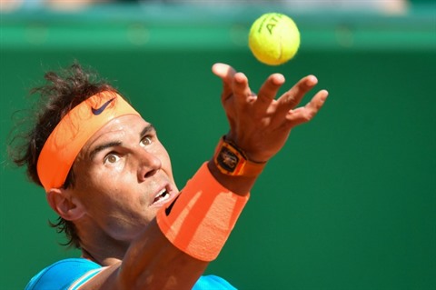 | L'Espagnol Rafael Nadal face à son compatriote Roberto Bautista Agut en 16e de finale du Masters 1000 de Monte-Carlo, le 17 avril. |