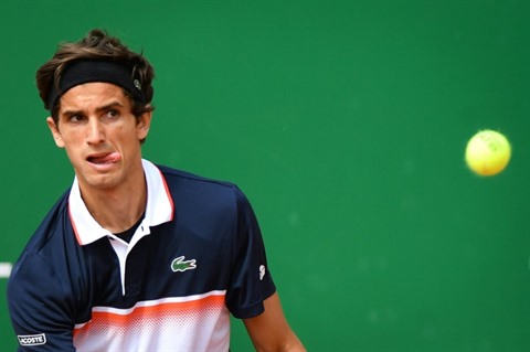 | Le Français Pierre-Hugues Herbert contre l'Espagnol Fernando Verdasco au tournoi de Monte-Carlo, le 16 avril à Monaco. |