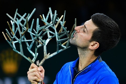 | Le Serbe Novak Djokovic vainqueur du Masters 1000 de Paris contre le Canadien Denis Shapovalov, le 3 novembre. |