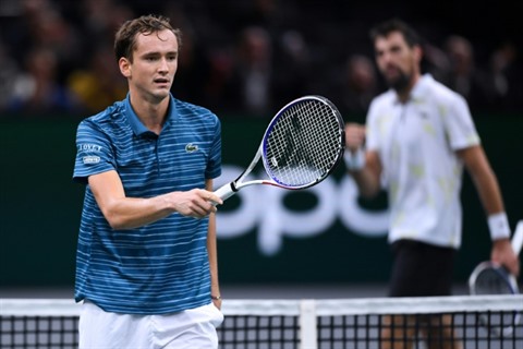 | Le N°4 mondial Daniil Medvedev los de son match face au Français Jérémy Chardy, le 29 octobre au Masters 1000 de Paris. |