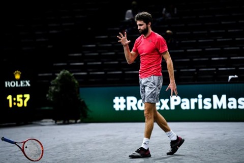 | Gilles Simon frustré et sans solution face à l'Américain Tommy Paul au Masters 1000 de Paris, le 3 novembre. |