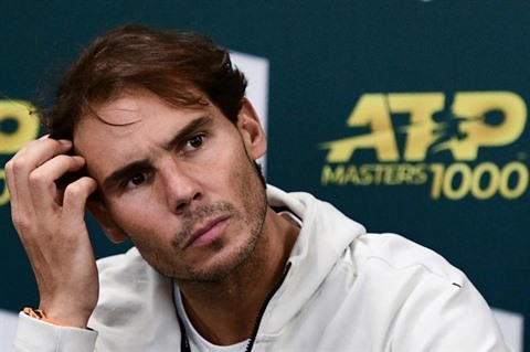 | L'Espagnol Rafael Nadal en conférence de presse pour annoncer son forfait en demi-finale du Masters 1000 de Paris face au Canadien Denis Shapovalov, le 2 novembre. |