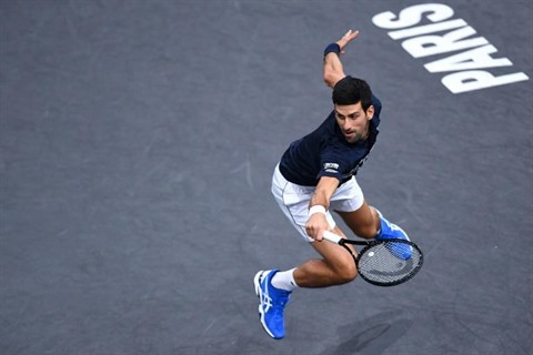 | Le Serbe Novak Djokovic contre le Bulgare Grigor Dimitrov en demi-finale du Masters 1000 de Paris, le 2 novembre. |