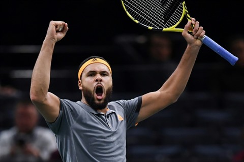 | Le Français Jo-Wilfried Tsonga après sa victoire face au Russe Andrey Rublev, lors du Masters 1000 de Paris, le 28 octobre. |