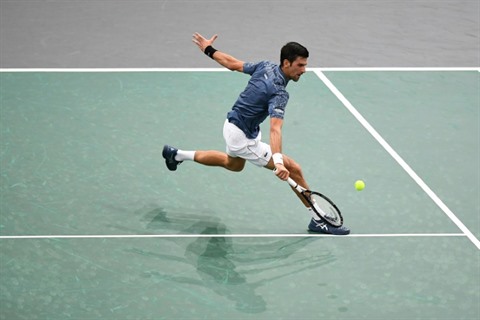 | Le Serbe Novak Djokovic face au Portugais Joao Sousa lors du 2e tour du Masters 1000 de Paris, le 30 octobre. |