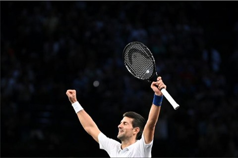 La joie du Serbe Novak Djokovic, après sa victoire en finale des Masters 1000 de Paris, le 7 novembre à l'AccorHotels Arena. |