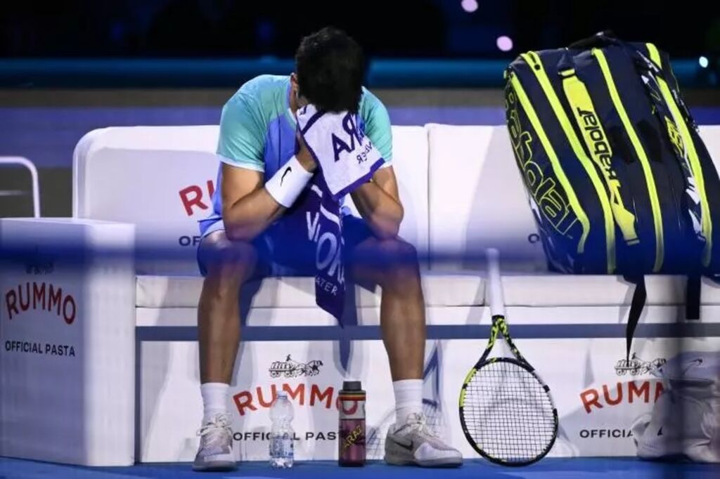 | L'Espagnol Carlos Alcaraz vient de perdre contre le Norvégien Casper Ruud en poules au Masters le 11 novembre à Turin. |
