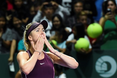 | L'Ukrainienne Elina Svitolina vient de l'emporter contre la Danoise Caroline Wozniacki en match du Masters féminin, le 25 octobre à Singapour. |