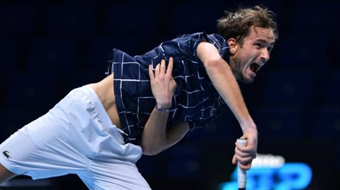 | Daniil Medvedev impressionnant face à Alexander Zverev au Masters de fin de saison à Londres, le 16 novembre. |