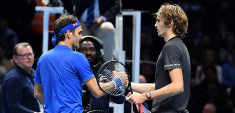 Le Suisse Roger Federer (gaucehe) et l'Allemand Alexander Zverev après leur demi-finale du Masters, le 17 novembre à Londres. Photo: AFP/VNA/CVN |