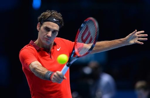 | Le Suisse Roger Federer lors de sa demi-finale du Masters face à son compatriote Stan Wawrinka, le 15 novembre à Londres. |