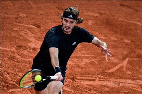 | Stefanos Tsitsipas opposé à Novak Djokovic en demi-finale du tournoi de Roland-Garros, le 9 octobre. |