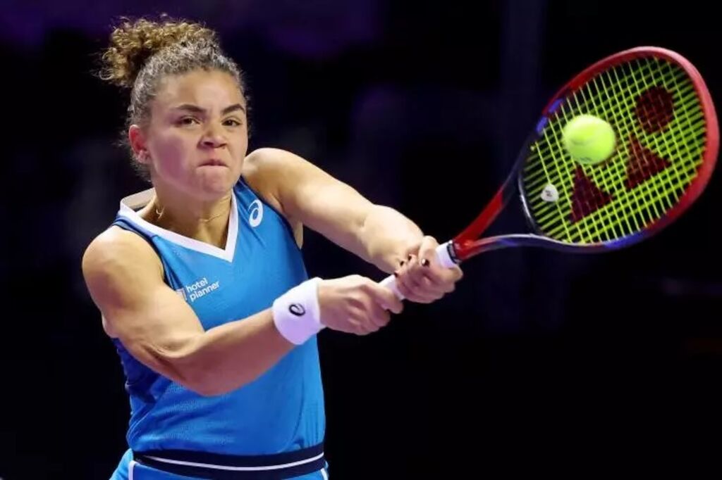 | L'Italienne Jasmine Paolini renvoie la balle à la Chinoise Zheng Qinwen au championnat WTA Finals à Riyad, le 6 novembre. |