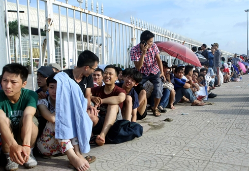 | Les fans font la queue au stade national de My Dinh, à Hanoi, pour acheter des billets du match amical opposant Arsenal au onze vietnamien. |