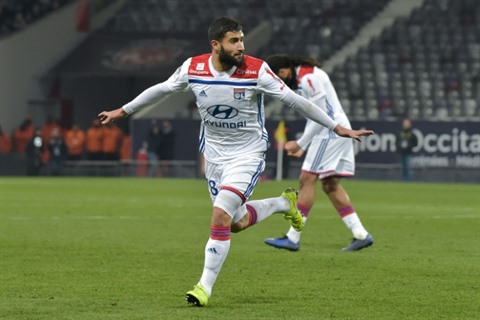 | Le capitaine de Lyon, Nabil Fekir, signe l'égalisation face à Toulouse, sur coup franc, le 16 janvier au Stadium de Toulouse. |