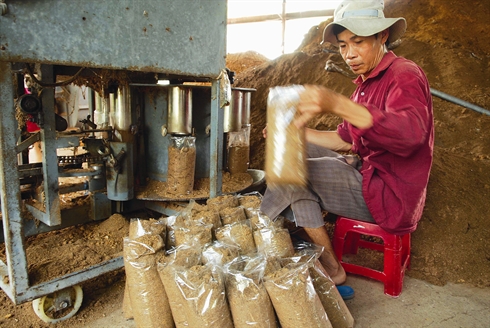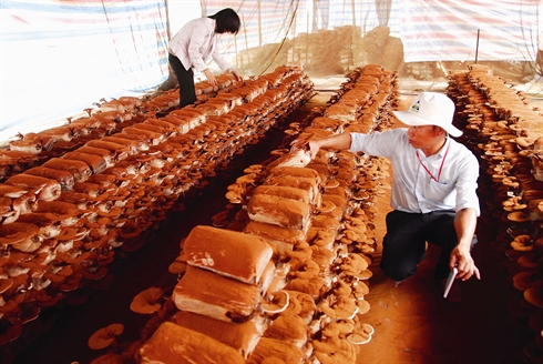 | Production du champignon basidiomycète linh chi - ganoderme luisant (Ganoderma lucidum) dans la sarl Linh Chi Vina à Hô Chi Minh-Ville. |