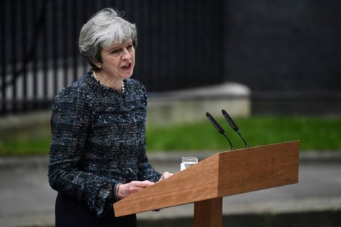 | La Première ministre britannique Theresa May le 3 mai devant sa résidence du 10, Downing Street, à Londres. |