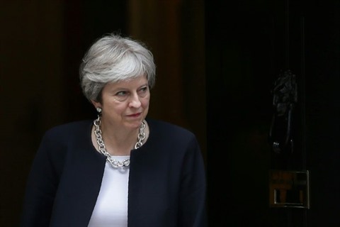 | Theresa May devant le 10 Downing Street à Londres, 17 avril. |