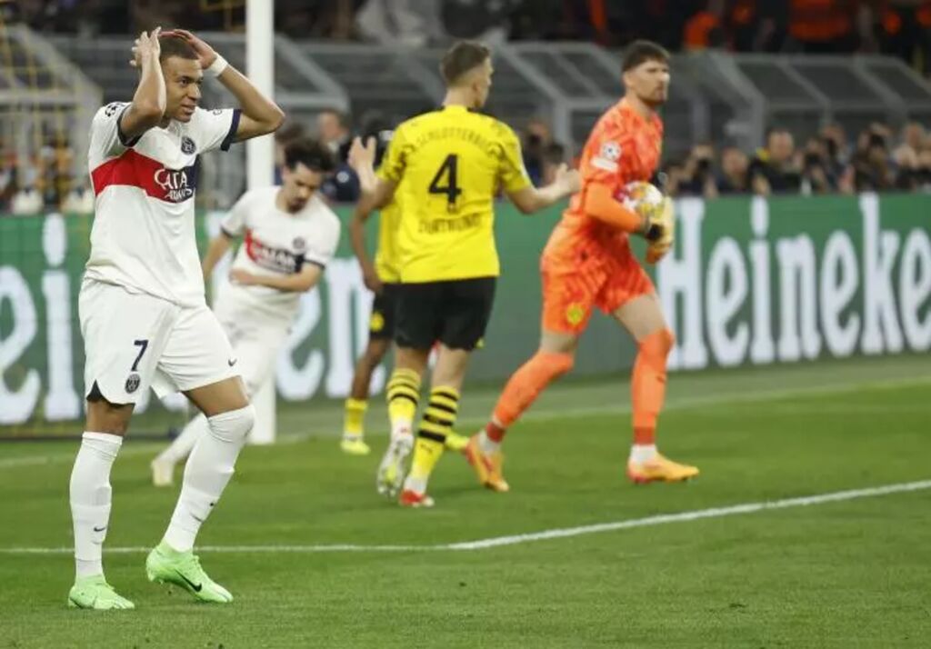 | L'attaquant du Paris Saint-Germain Kylian Mbappé est resté muet lors de la défaite de son équipe (1-0) en finale aller de la Ligue des champions contre Dortmund, le 1er mai à Dortmund. |