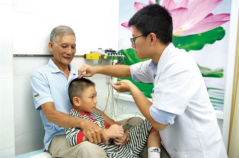 | Séance d’acupuncture sur un enfant autiste à l’Institut de médecine et pharmacie traditionnelle de Hô Chi Minh-Ville. |