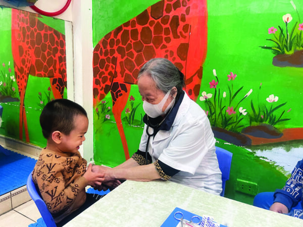 | Des médecins de FTW examinent les patients pédiatriques à l'hôpital Viêt Duc en 2018. |