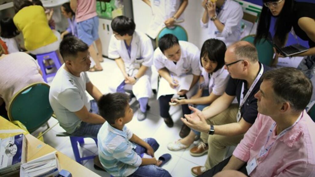 Avant de procéder à l'intervention chirurgicale, le professeur Perry et une équipe de médecins vietnamiens examineront, évalueront l'état actuel et élaboreront un plan de traitement pour les patients pédiatriques de tout le Vietnam.