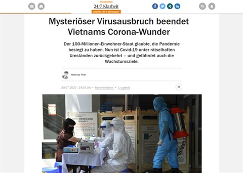 Selon le journal Handelsblatt (Commerce), des observateurs à l'étranger s’intéressent beaucoup à la situation épidémique au Vietnam car le pays est un modèle montrant comment il est difficile de faire face à la pandémie malgré les contrôles d'entrée les plus stricts. En outre, l'exemple du Vietnam montrera si ses mesures préventives fonctionnent deuxième fois efficacement.