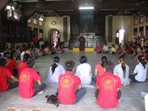 | Un cours de méditation au monastère Sùng Phuc, arrondissement de Long Biên (Hanoi |