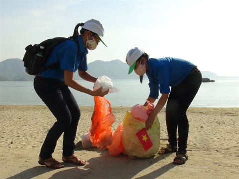 | Des étudiants ramassent des ordures sur la plage de Nha Trang, province de Khanh Hòa (Centre). |