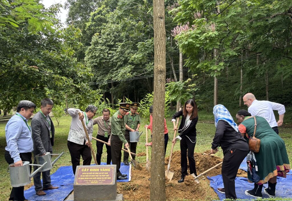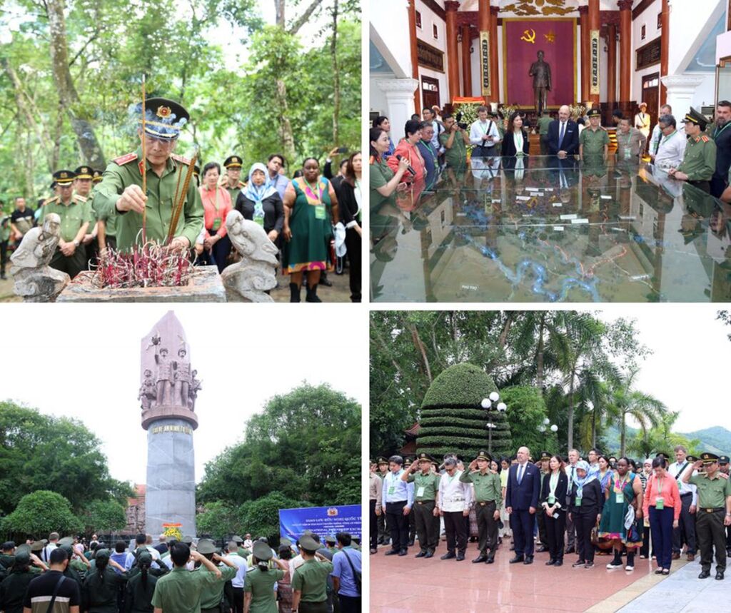 Le général de corps d'armée Lê Quốc Hùng, vice-ministre de la Police, a accompagné une délégation internationale composée d’ambassadeurs, de vice-ambassadeurs, de représentants diplomatiques et de membres des forces de l’ordre de plusieurs pays présents au Vietnam, dans une visite de sites historiques liés à l’activité du Parti communiste du Vietnam et du Président Hô Chi Minh, au cœur de la base révolutionnaire du Viêt Bac, située dans les provinces de Tuyên Quang et de Thái Nguyên (Nord). Parmi ces lieux emblématiques figurent la cabane de Nà Nưa, la maison commune de Tân Trào, le Département central de la police, ainsi que la "zone de sécurité" (ATK) de Định Hóa.
