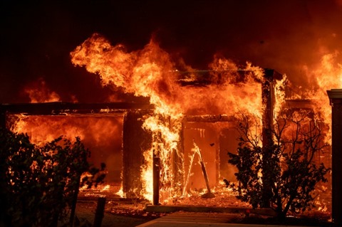 | Les flammes du "Kincade fire" consument un bâtiment à Healdsburg, en Californie, le 27 octobre. |