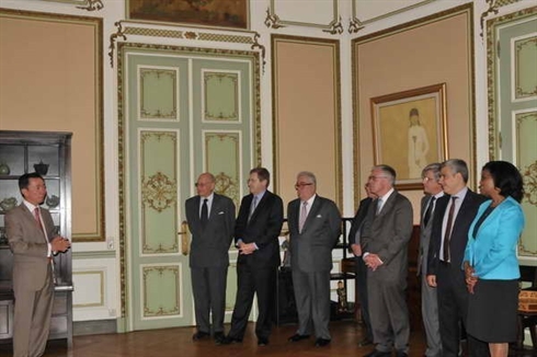 | L'ambassadeur Pham Sanh Châu (gauche) et des ambassadeurs du corps diplomatique à Bruxelles, le 26 mai. |