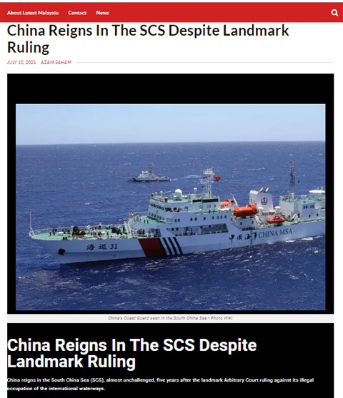 | Capture d'écran de l'article sur la Mer Orientale de Latestmalaysia.com. |