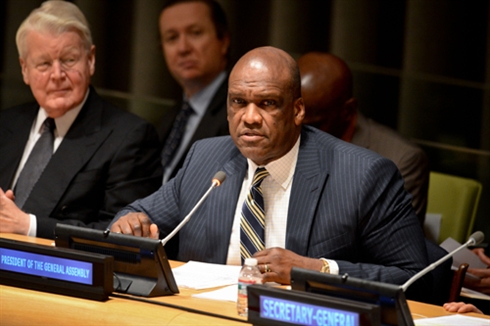 | Le président de l’Assemblée générale des Nations unies, John Ashe. |