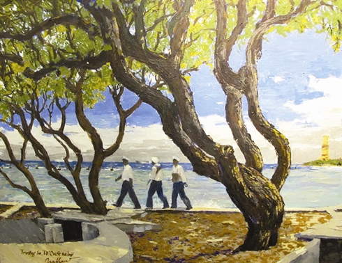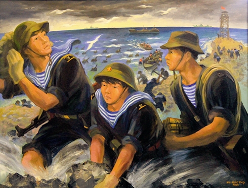 L’expo «L’arrivée à Truong Sa» a présenté 62 œuvres (caricatures, huiles, sculptures…) de 30 artistes des trois régions du pays, réalisées après des périples dans l’archipel de Truong Sa : Dap nên Tô quôc (Édification de la Patrie) de Nguyên Duc Tho, Linh biên (Le marin) de Doàn Van Thân, Truong Sa de Ca Lê Thang, Nguoi gac ngon dèn biên (Le gardien de phare) de Trân Vu Hoàng, Dao Gac Ma (Île de Gac Ma) de Phan Oanh, Cô Linh dao thep (Cô Linh, île de fer) de Lê Phuong Dông, etc.