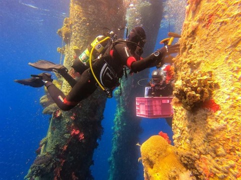 Des travaux d'entretien sont programmés sur cette jetée pétrolière qui s'avance de plusieurs centaines de mètres dans la mer. Si on ne déplace pas les coraux qui ont élu domicile ici - avec tous les bienfaits qu'ils produisent sur la vie sous-marine -, leurs jours sont comptés. Alors Assaf Zvuloni et son collègue israélien Assaf Habary revêtent leur équipement de plongée, pour s'immerger avec burins et marteaux.