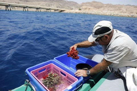 | Des coraux en passe d'être transportés vers un observatoire, à Eilat le 20 mai |