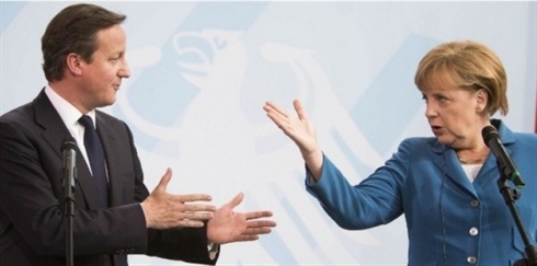 | Le Premier ministre britannique David Cameron et la chancelière allemande Angela Merkel. |