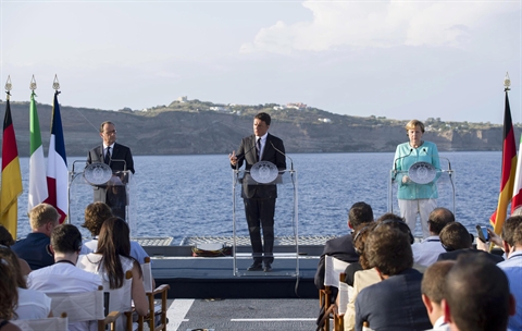 >>Mini-sommet Merkel-Hollande-Renzi en Méditerranée pour relancer l'UE