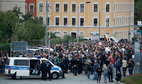 Les protestataires se sont rassemblés à proximité d'une réunion qu'organisait le chef du gouvernement de Saxe, Michael Kretschmer, membre du parti de centre droit de la chancelière Angela Merkel, et la maire sociale-démocrate de Chemnitz, avec des habitants de Chemnitz pour tenter de ramener le calme.